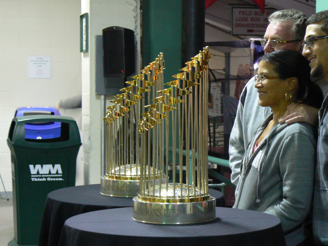 And, of course, the trophies (with strangers behind them). It was a rad experience as I'm sure you've gathered. They had said rain was coming, and I feared having to hit indoors, which was their backup plan, but it held off. And it was probably in the 50s, not bad at all. So that was it. We got Mexican food and listened to Yanks-O's on WBAL 1090 AM, which was coming in better than WCBS, on the ride back. The end.